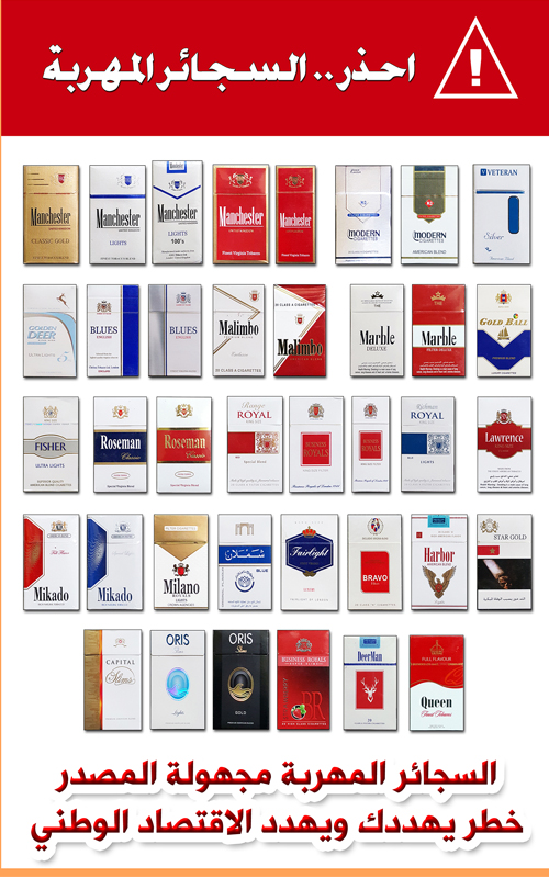 "السجائر المهربة .. سموم تغزو الأسواق" ،لا شك أن ظاهرة انتشار السجائر المهربة في الأسواق اليمنية تعد ظاهرة مخيفة ذات مخاطر صحية جمة على المواطن نتيجة انتهاء فترة صلاحيتها، بالإضافة إلى أضرارها الاقتصادية الكبيرة.