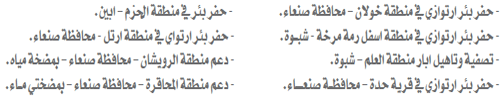 نفذت الشركة مشاريع حفر آبار مياه في عدة محافظات منها :